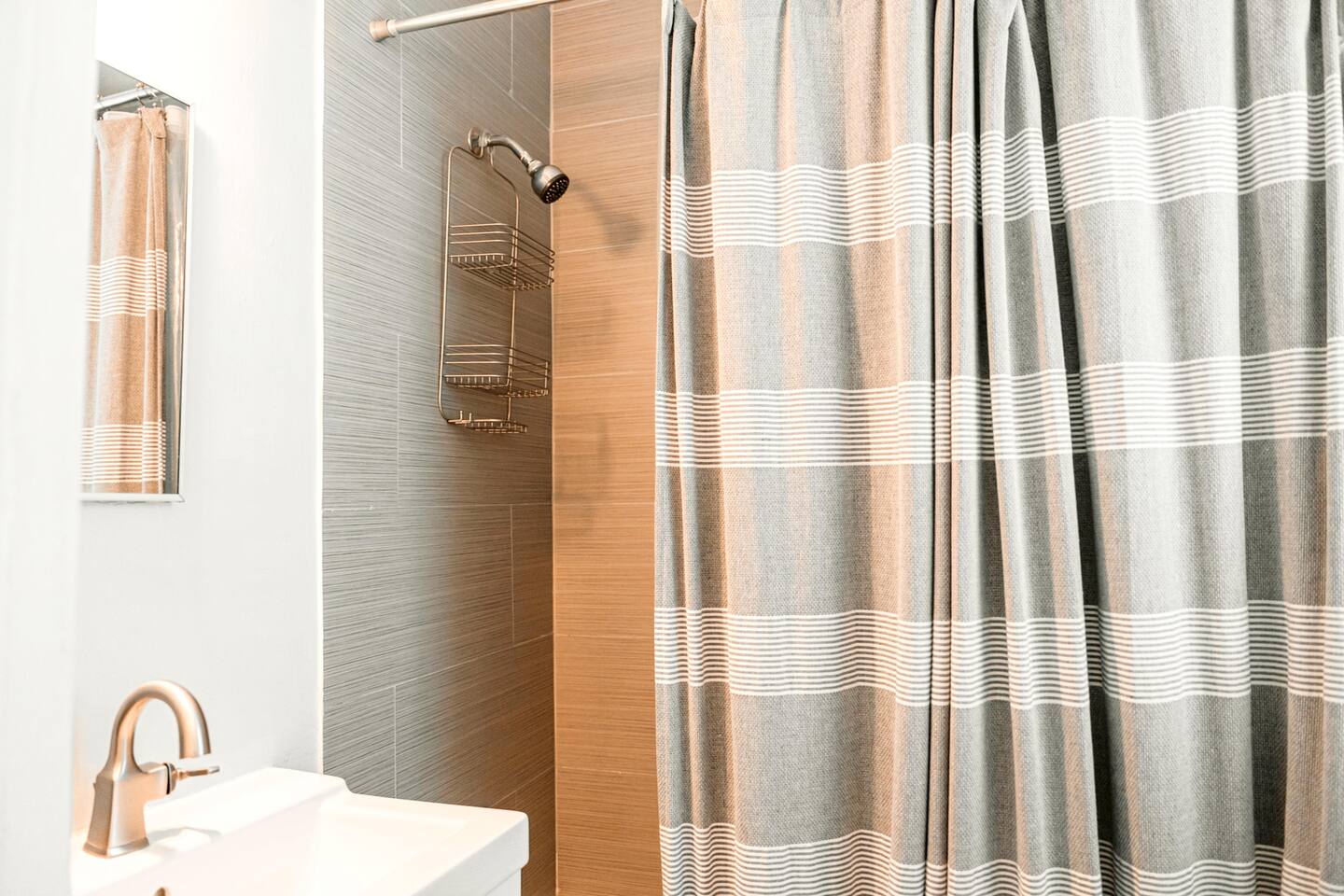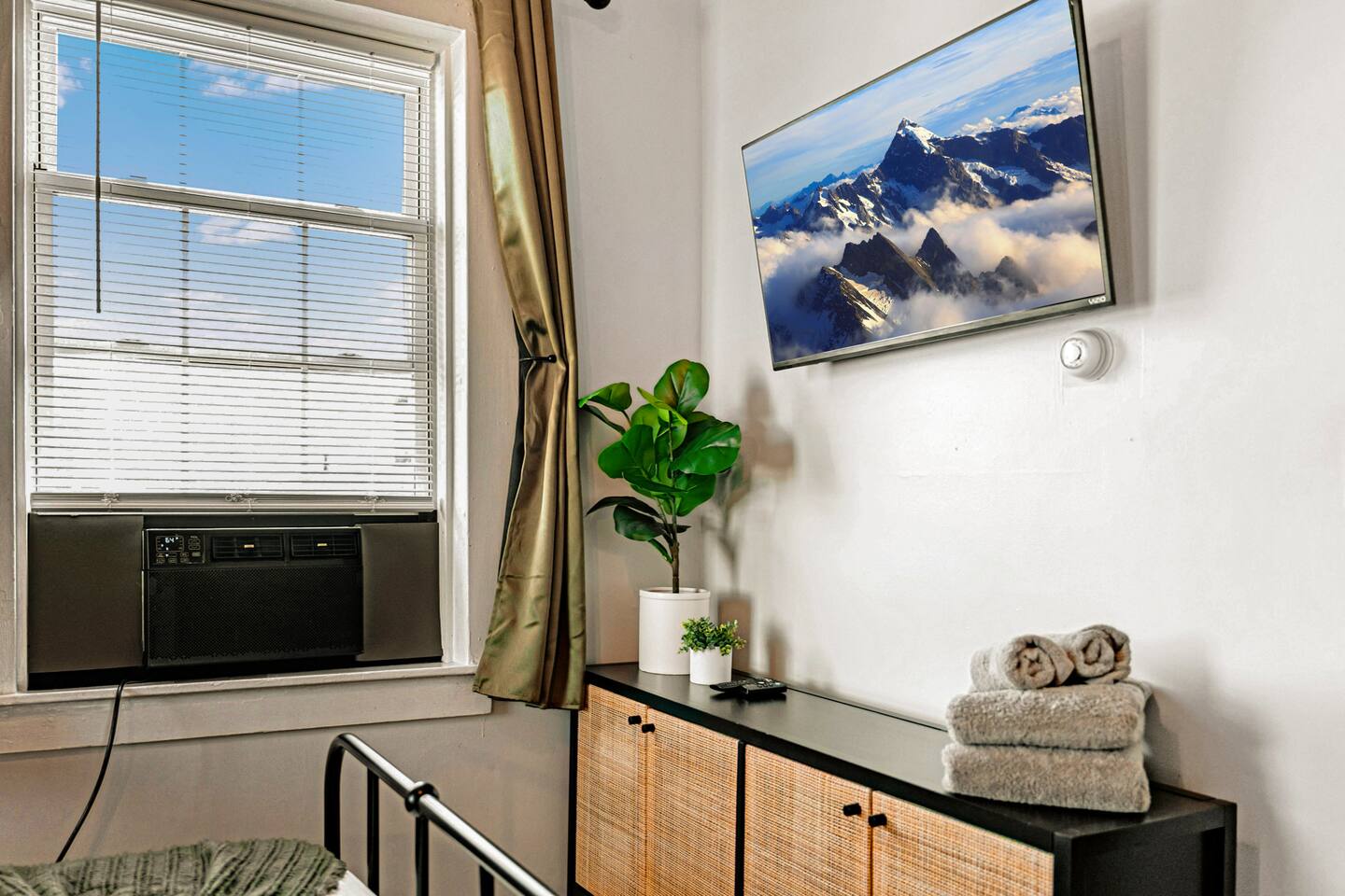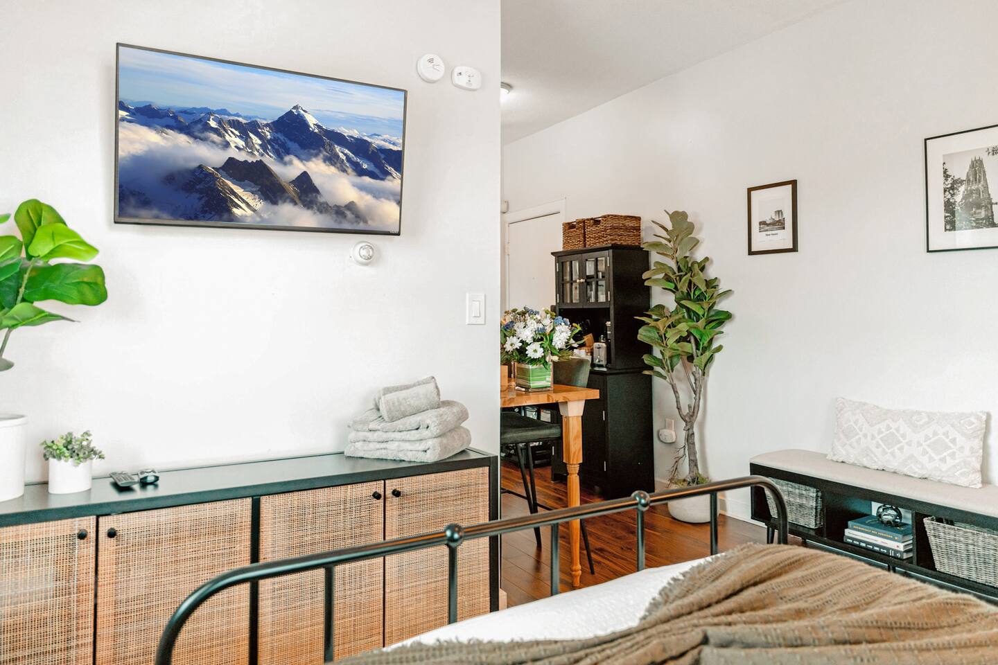 LIVING ROOM ✔ 40" HD Smart TV w/ all streaming servies ✔ 1 Queen Bed - Hybrid Spring Foam mattress with Tempur-Pedic Cool Luxury Pad that can be removed ✔ 1 Twin Air Mattress ✔ 4 Casper Original Pillows ✔ Blackout Curtains (installed after photos) ✔ Games (Uno, Monopoly, Cards) ✔ Window A/C Unit KITCHEN ✔ Kitchen with Wrap-Around Island for Working & Eating ✔ All Utensils, Pots, Pans, Plates, Bowls, Cups, Wine Glasses, and more ✔ Keurig Coffee Maker (w/ K-cups) ✔ French Press (w/ grounds) ✔ 72 oz. Ninja Blender BATHROOM ✔ Full bathroom (Shower, Sink, Toilet, etc.) ✔ Revlon Hairdryer