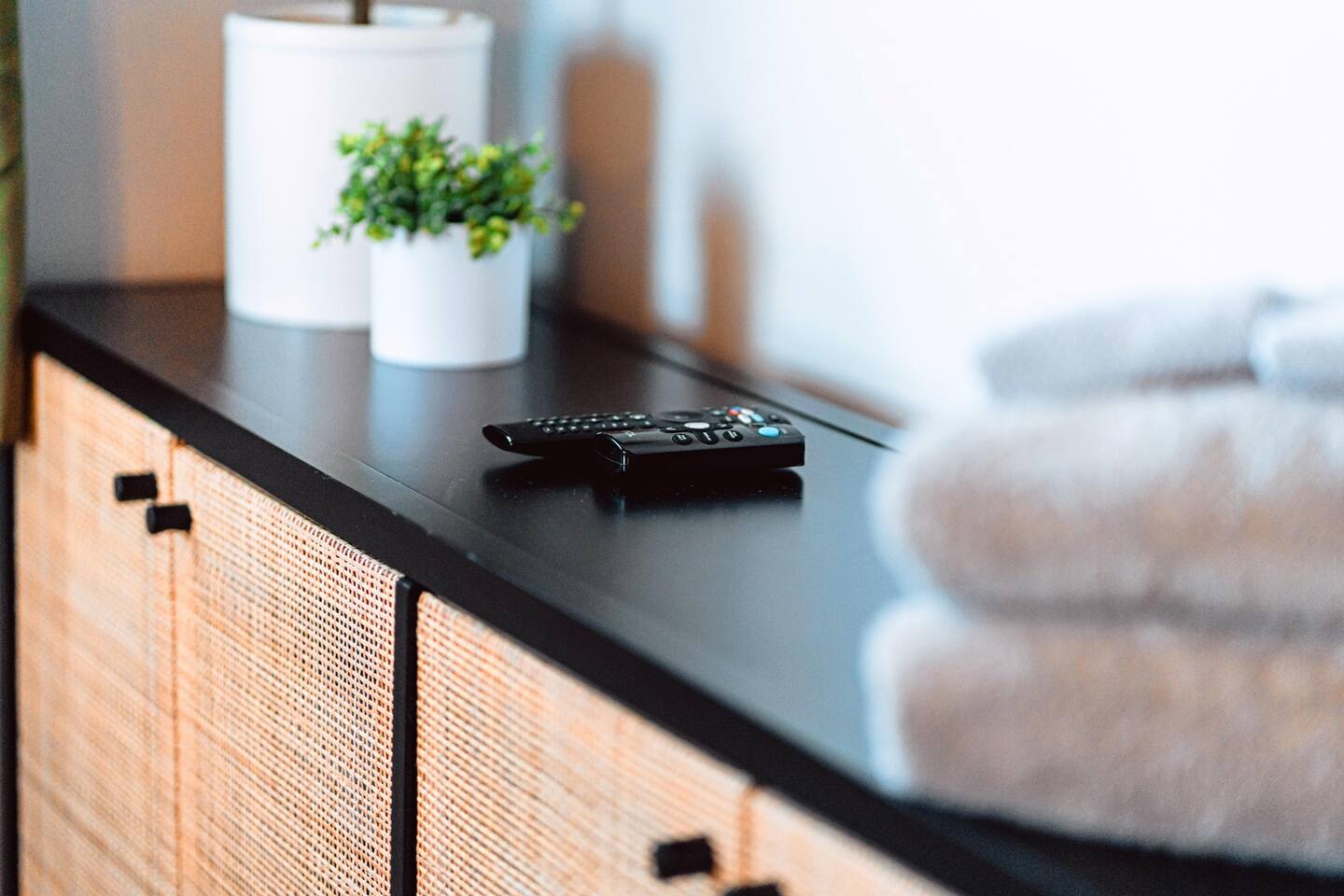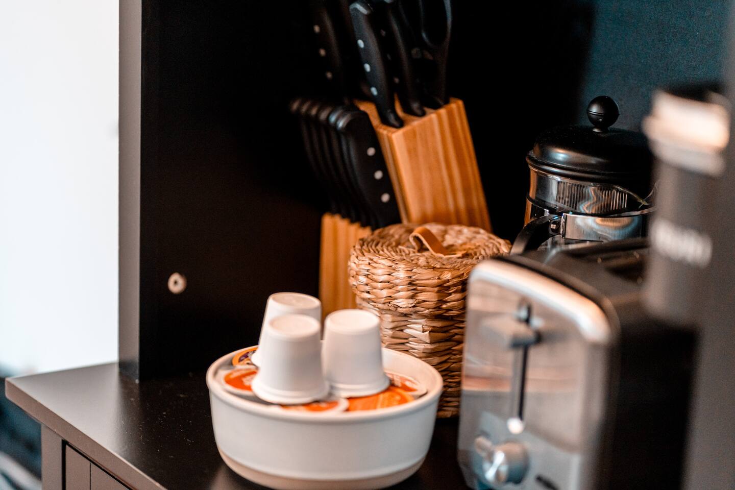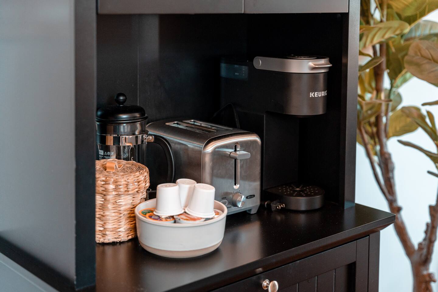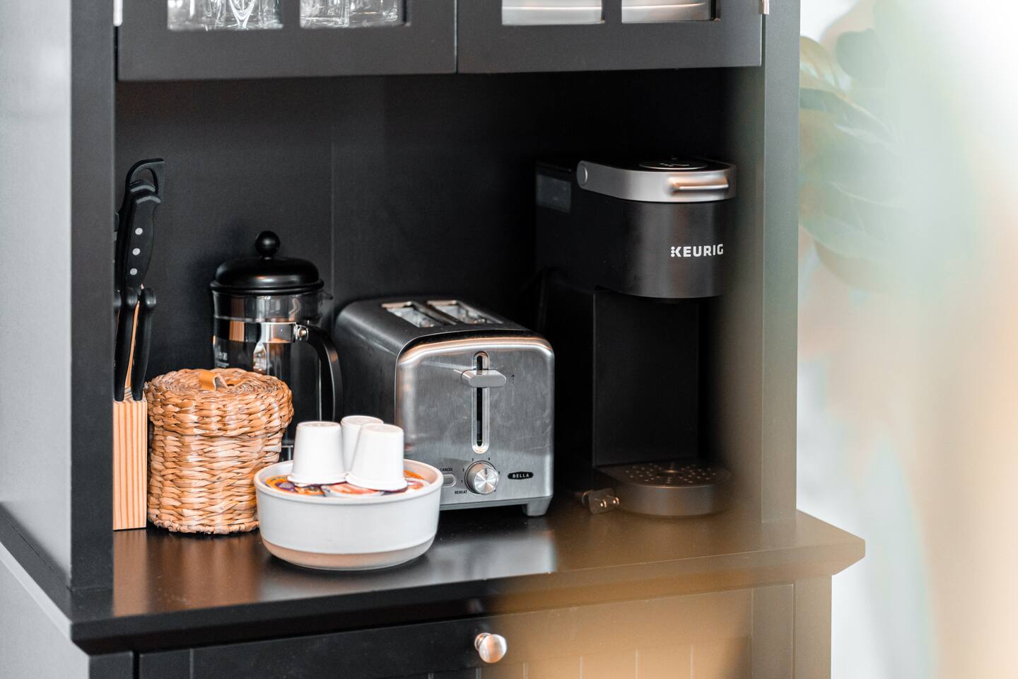 LIVING ROOM ✔ 40" HD Smart TV w/ all streaming servies ✔ 1 Queen Bed - Hybrid Spring Foam mattress with Tempur-Pedic Cool Luxury Pad that can be removed ✔ 1 Twin Air Mattress ✔ 4 Casper Original Pillows ✔ Blackout Curtains (installed after photos) ✔ Games (Uno, Monopoly, Cards) ✔ Window A/C Unit KITCHEN ✔ Kitchen with Wrap-Around Island for Working & Eating ✔ All Utensils, Pots, Pans, Plates, Bowls, Cups, Wine Glasses, and more ✔ Keurig Coffee Maker (w/ K-cups) ✔ French Press (w/ grounds) ✔ 72 oz. Ninja Blender BATHROOM ✔ Full bathroom (Shower, Sink, Toilet, etc.) ✔ Revlon Hairdryer