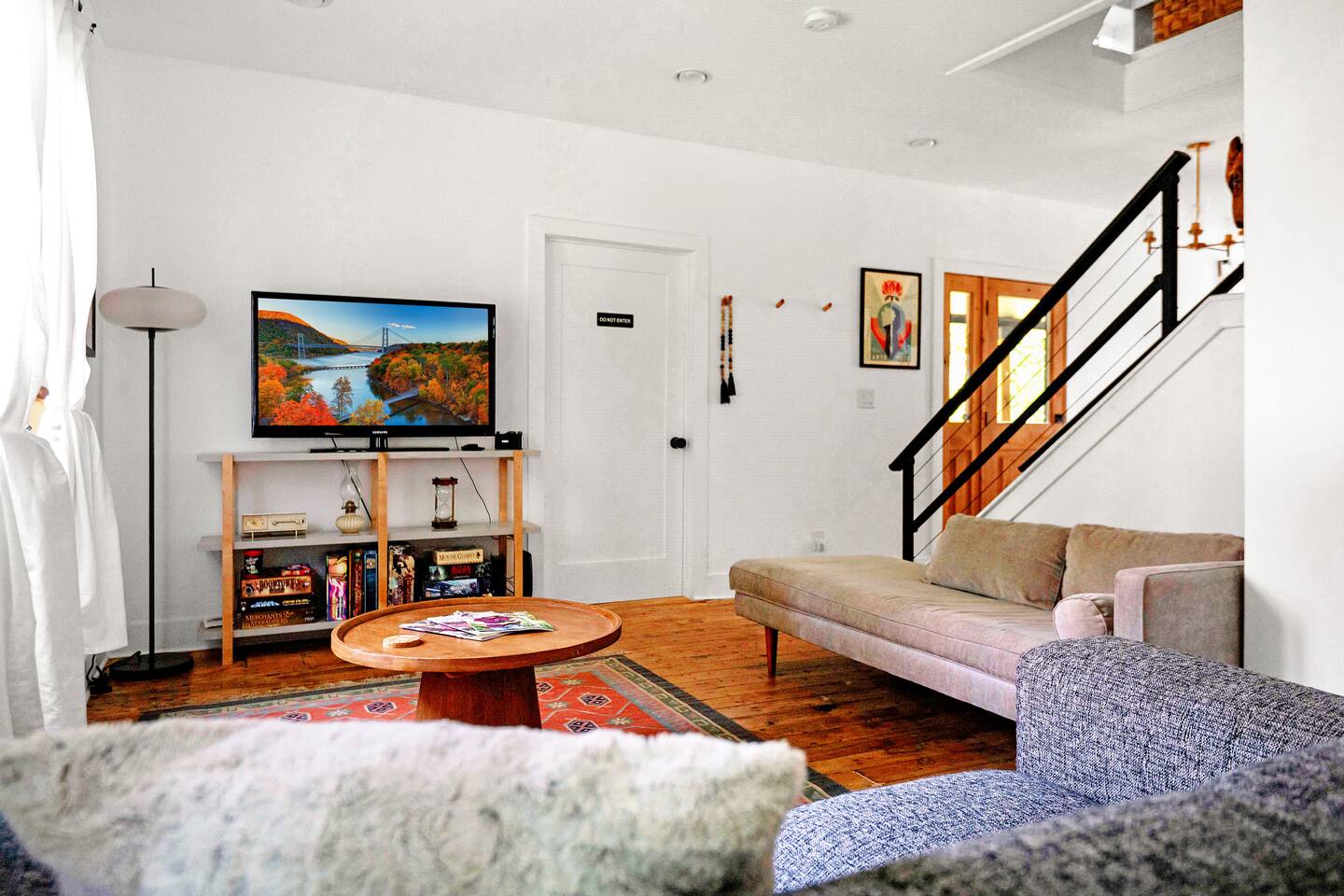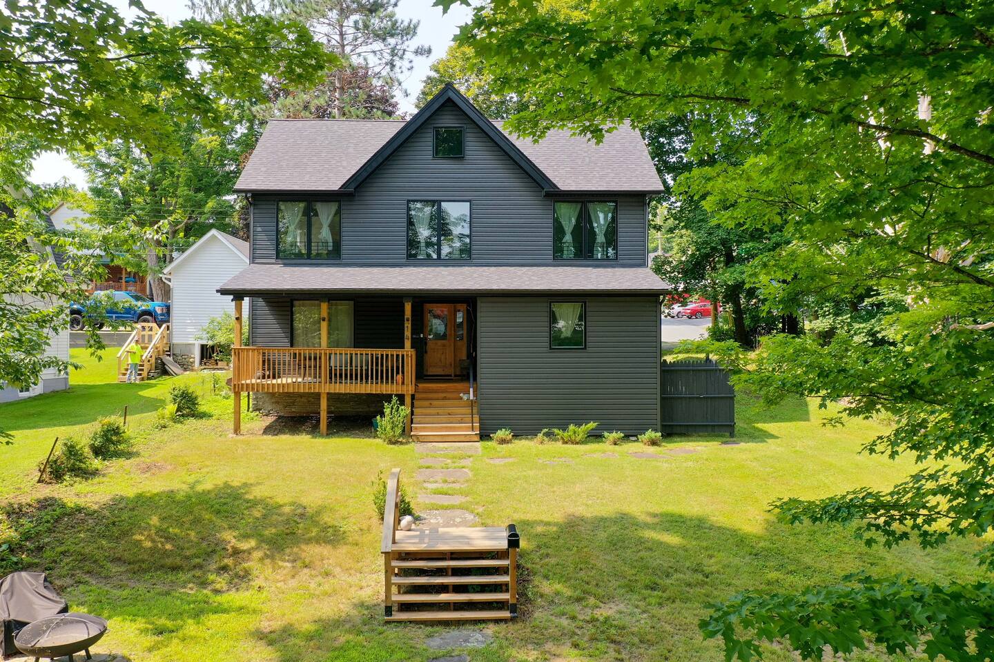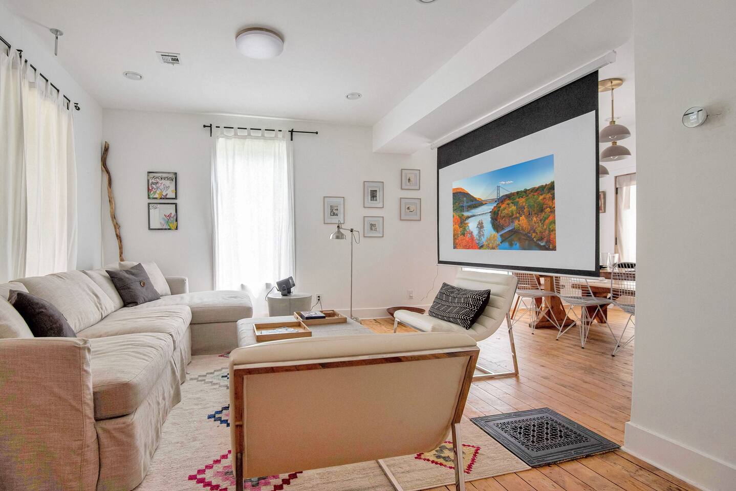 Experience comfort and charm in this beautifully decorated 3 bedroom, 2.5-bath home on a quiet street in Livingston Manor. Walk to local cafes, restaurants, and shops in this close-knit community. Discover the birthplace of fly-fishing, art spaces, and the popular Upward Brewing Company. Ideal for a serene yet adventurous getaway. LIVING ROOM ✔ Relax and unwind in a cozy, inviting space perfect for movie nights or quiet afternoons. ✔ 40" HD Smart TV, projector, and board games for families ✔ Sectional sofa, lounge chairs, and central A/C & heat for year-round comfort KITCHEN ✔ Fully equiped kitchen with all cooking supplies including drip coffee maker. FIRST BEDROOM ✔ 1 Queen-Sized Bed ✔ Walk-in Closet ✔ Full-Body Mirror ✔ Air Mattress ✔ Iron & Ironing Board SECOND BEDROOM ✔ 1 Queen-Sized Bed ✔ Closet ✔ Lounge Chair THIRD BEDROOM ✔ 1 Queen-Sized Bed ✔ Wardrobe ✔ Lounge Chair BATHROOMS (2.5) ✔ Body Wash, Shampoo, Fresh Towels ✔ 3 Hairdryers OUTDOOR SPACE ✔ Outdoor Table w/ seating for 6 ✔ Propane BBQ Grill ✔ Fire Pit