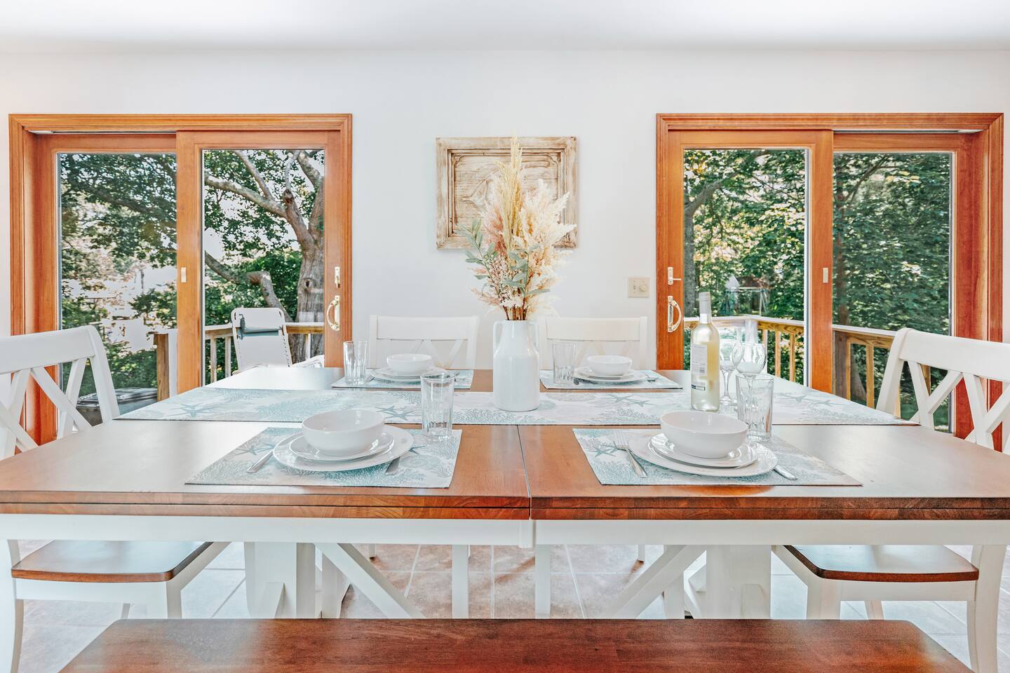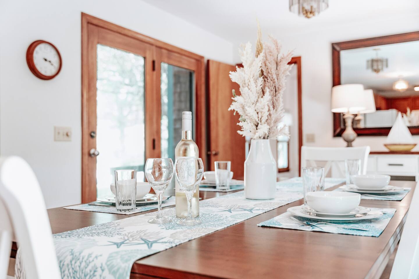 LIVING ROOM ✔ 40" HD Smart TV ✔ Large Sofa ✔ Large Coffee table ✔ Accent Lounge Chair ✔ Games (Uno, Monopoly, Cards) ✔ 1 Pack 'N Play - Pamo Babe Portable Crib Baby Playpen (Max: 33 lbs) ✔ Central A/C & Heat (Mini-Split) KITCHEN ✔ High-Top Dining Table (Seats 2) ✔ All Utensils, Pots, Pans, Plates, Bowls, Cups, Wine Glasses, and more ✔ Keurig Coffee Maker (w/ K-cups) ✔ Magic Bullet Blender DINING ROOM ✔ Dining table with seating for 6 BEDROOMS (4) ✔ The first three bedrooms have queen-sized beds, with a twin-sized bed in the fourth BATHROOMS (2.5) ✔ Full Bathroom ✔ Full Bathroom ✔ Half Bathroom OUTDOOR SPACE & AMENITIES ✔ Parking for 4 cars ✔ Propane Grill ✔ Back Deck ✔ 4 Adirondack Chairs ✔ 7 beach chairs, a cooler, and beach towels
