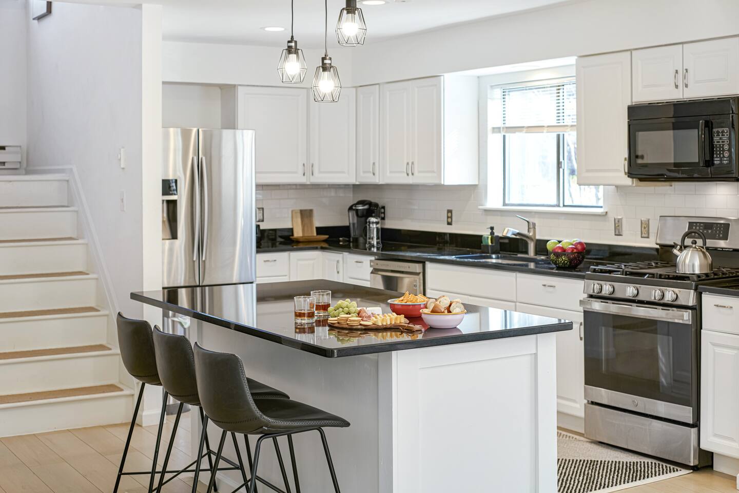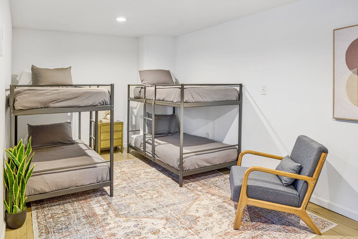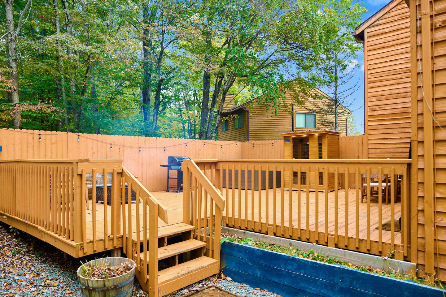 LIVING ROOM ✔ 50" Smart TV with streaming ✔ Board games ✔ Spacious sofa and two lounge chairs OUTDOOR SPACE ✔ Hot Tub ✔ Sauna ✔ Propane Grill ✔ Fire Pit ✔ Picnic Table w/ seating for 6 KITCHEN ✔ Spacious kitchen with stainless steel appliances, and ample cookware for up to 10 guests ✔ Dining table w/ seating for 4 ✔ Coffee maker, Keurig (with ground coffee and K-cups provided) ✔ Generous counter space and kitchen island with seating for three BEDROOMS ✔ Bedroom 1: Full bed, walk-in closet, and en-suite bathroom ✔ Bedroom 2: Full bed and walk-in closet ✔ Bedroom 3: Full bed ✔ Bedroom 4: Downstairs open area with four twin bunk beds, sleeping 4 guests BATHROOMS ✔ 3.5 Bathrooms stocked with body wash, shampoo, fresh towels, toiletries, and hairdryers