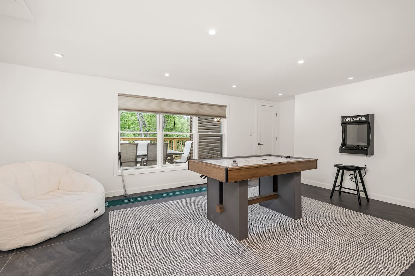 BEDROOMS & BATHROOMS (8BR/6BA) ✔ 4 Bedrooms with Queen Beds | 1 King Bedroom w/ Private Bath | 1 Full Bedroom ✔ 2 Bedrooms with Twin Beds (incl. Trundle w/ 2 Twins) ✔ 6 Full Baths (2 w/ Tubs, 1 w/ Shower for Sauna/Hot Tub) LIVING ROOM ✔ Spacious Seating Area ✔ Indoor Fireplace (firewood not provided) ✔ HD Smart TV ✔ Cozy Lounge Chairs & Sofa ✔ Large Windows with Scenic Views KITCHEN ✔ Fully Equipped Kitchen w/ seating for 8 ✔ Modern Appliances GAME ROOM ✔ Indoor sauna ✔ Air Hockey Table ✔ Arcade Games including Pac Man ✔ Connect 4 ✔ Cornhole ✔ Indoor Children's Basketball hoop OUTDOOR SPACE ✔ 6-Person Hot Tub ✔ Propane BBQ Grill ✔ Propane Fire Pit ✔ Outdoor Dining Set OTHER AMENITIES ✔ Indoor Sauna ✔ High-Speed Starlink WiFi ✔ Washer & Dryer in-unit ✔ Plenty of Parking Space