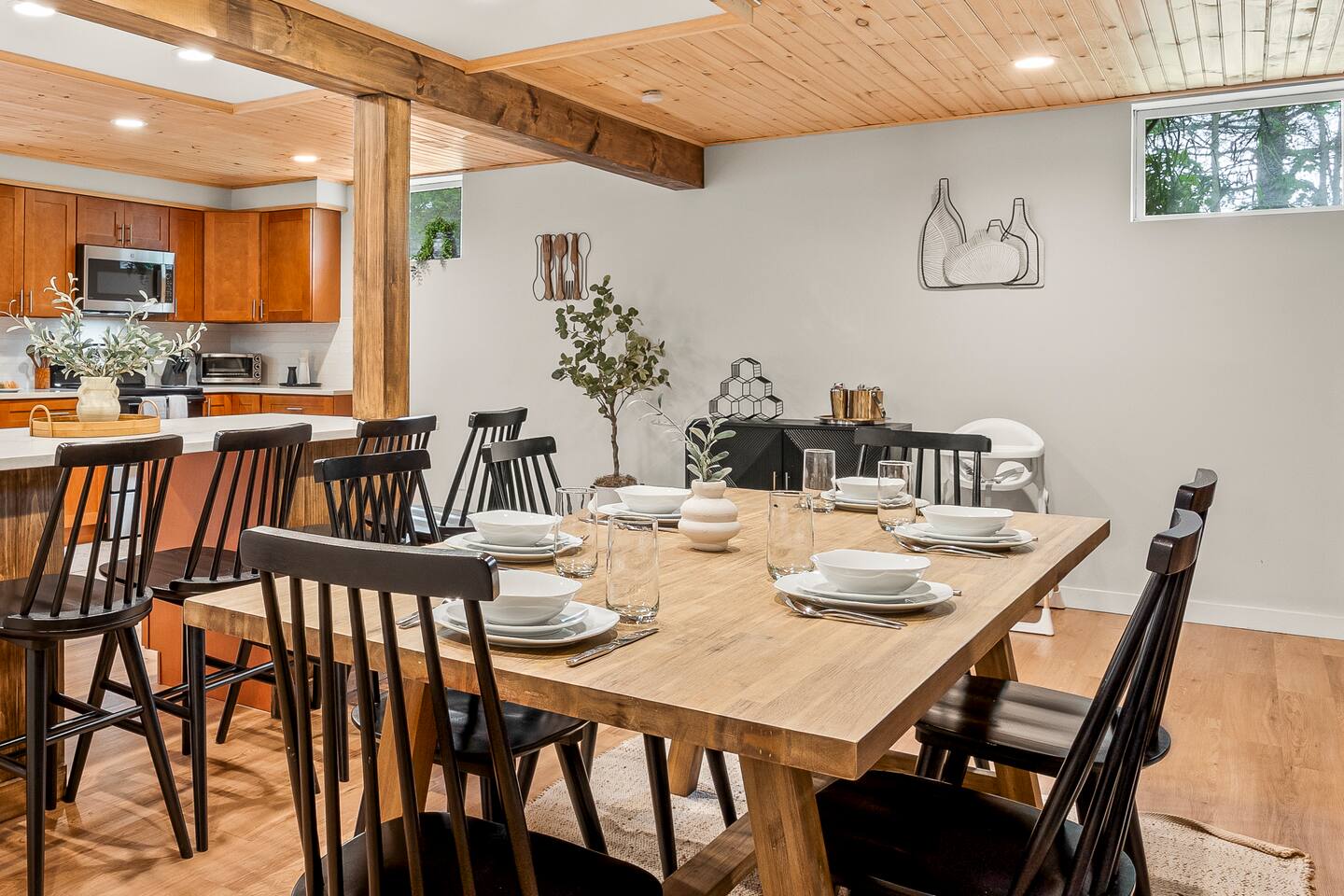 LIVING ROOM ✔ 40" Smart TV ✔ Board Games ✔ Desk & Desk Chair Workspace BEDROOMS & BATHROOMS ✔ This home offers 4 bedrooms, 3 full bathrooms, and 1 half bathroom. Bedroom 1 features a queen-sized bed, Bedrooms 2 and 3 each have a king-sized bed, and Bedroom 4 includes two single-sized beds—comfortably accommodating up to 8 guests. KITCHEN ✔ Coffee Maker ✔ Blender ✔ Baby High-chair OUTDOOR SPACE ✔ Hot Tub w/ seating for 4 ✔ Fire Pit ✔ Propane BBQ Grill ✔ Outdoor Dining Table w/ seating for 6