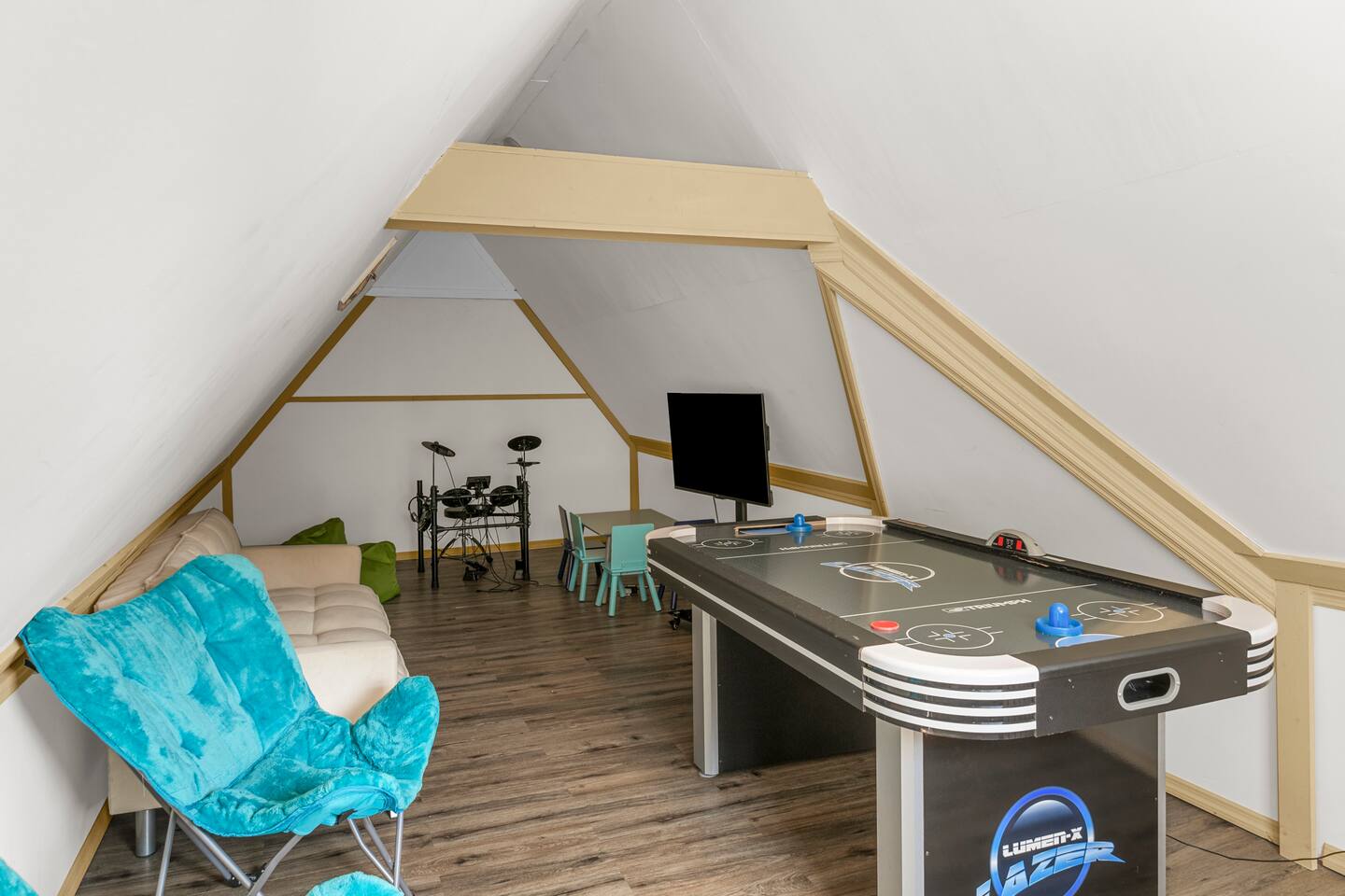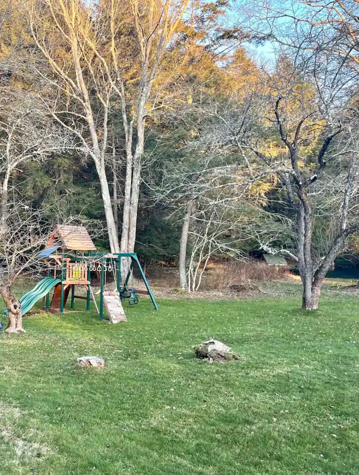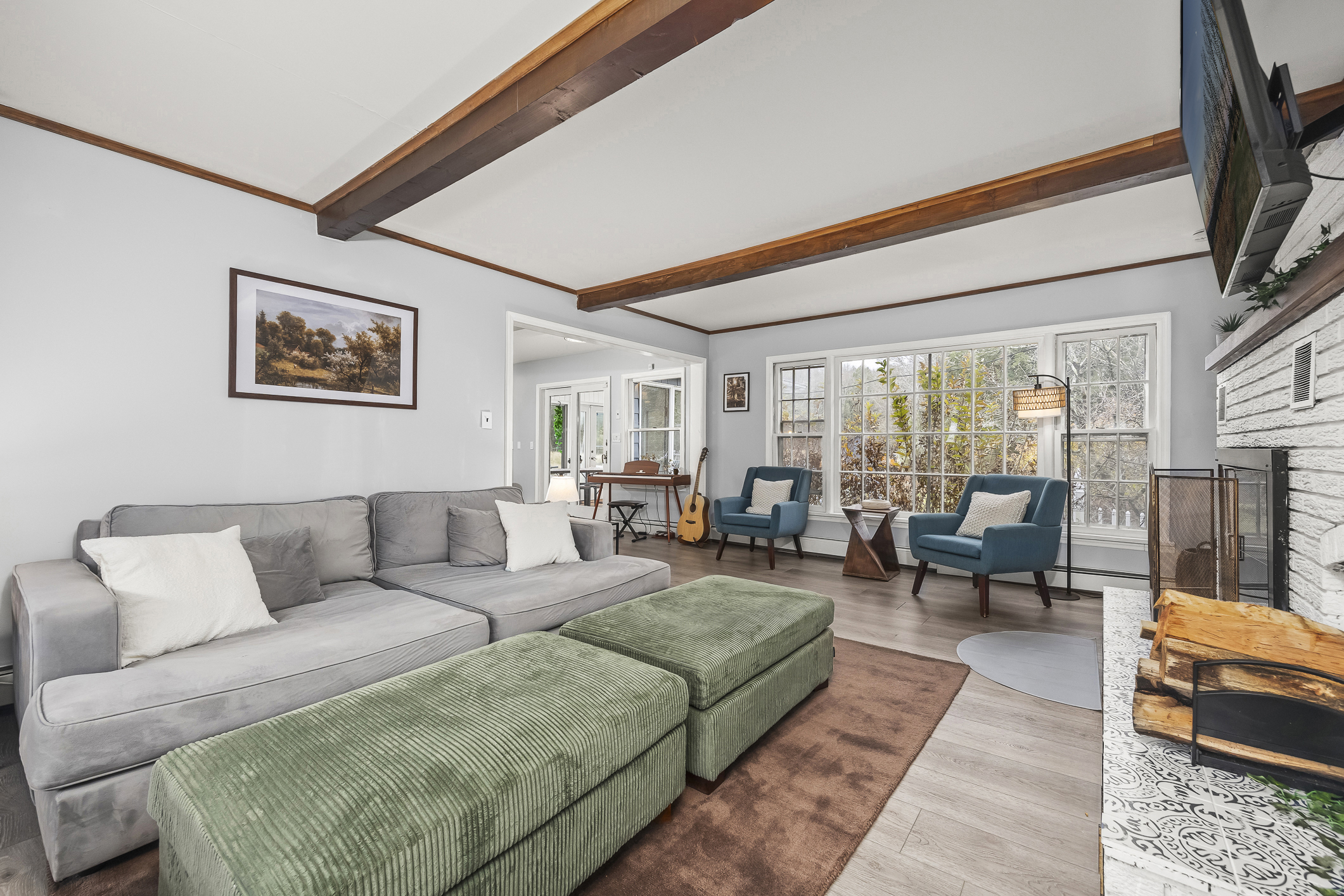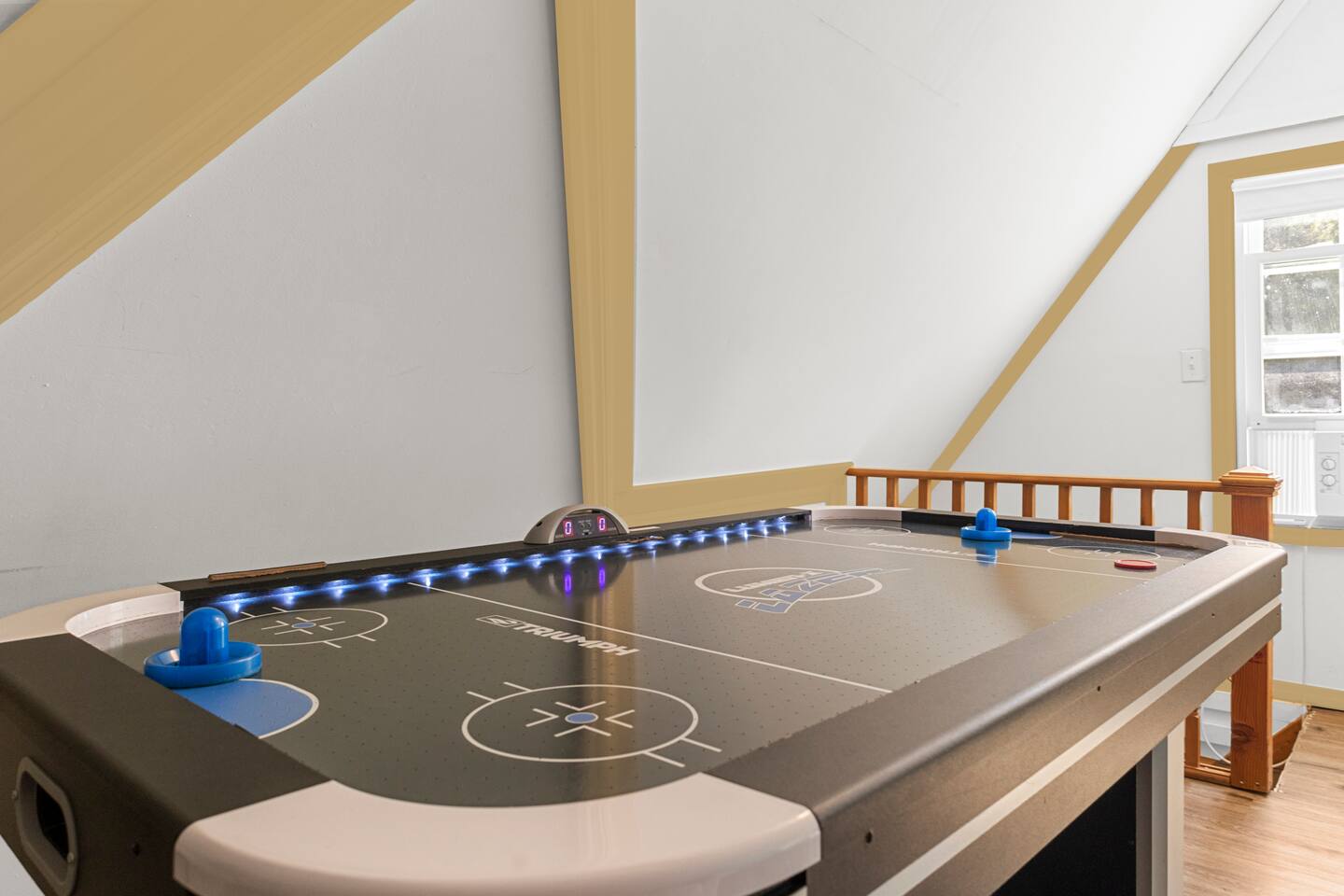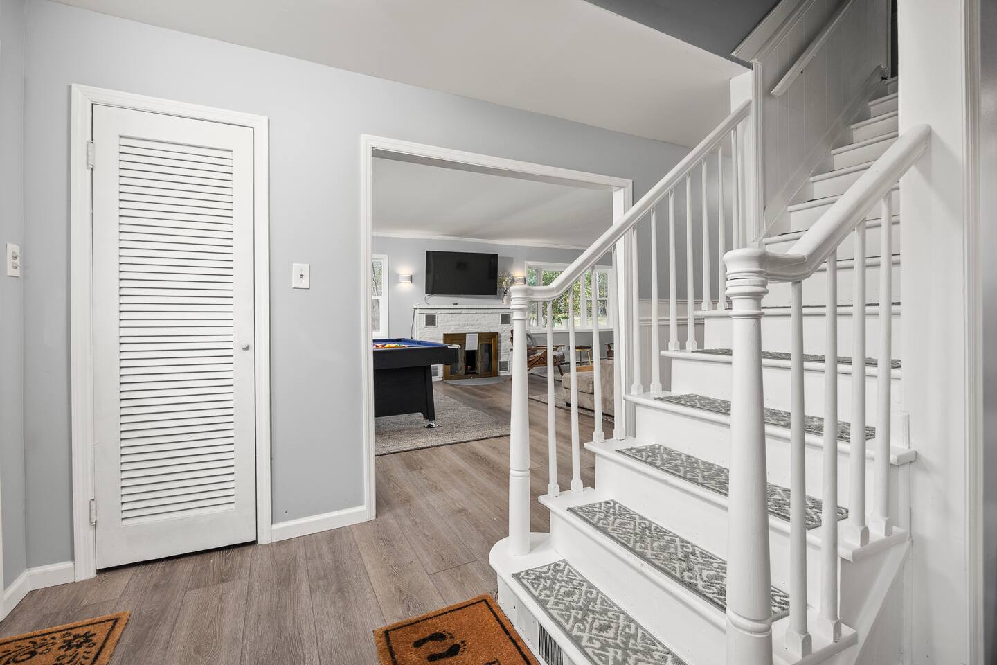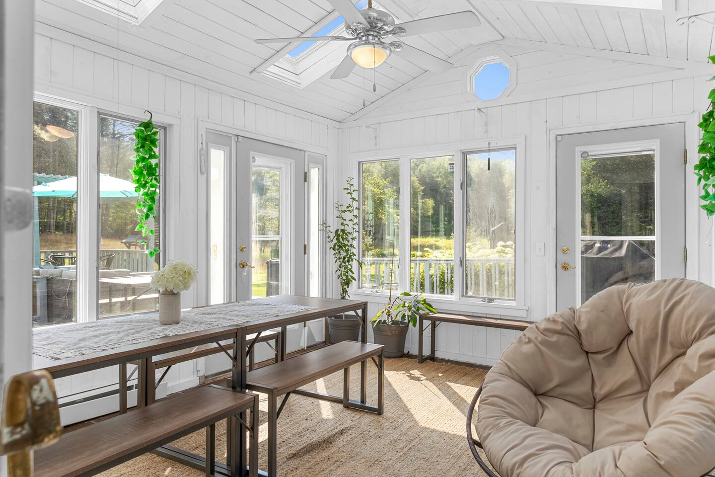 BEDROOMS AND BATHROOM ✔ 5 Bedrooms featuring a mix of king, queen, and twin bunk beds ✔ 3.5 Bathrooms (one with a standard tub and one with a soaker tub) LIVING ROOMS (2) ✔ 2 Large sofas & lounge chairs ✔ 2 40" HDTVs ✔ Fireplace w/ four logs provided to start fire ✔ Pool table ✔ Keyboard piano KITCHEN ✔ 8-person dining table with 8 chairs ✔ 4 bar stools ✔ A fully equipped kitchen comes with all essentials—dishwasher, microwave, refrigerator, toaster, cookware, and plenty of utensils. ✔ Keurig K-cup coffee maker ✔ French press OUTDOOR SPACE ✔ Large saltwater pool with lounge furniture ✔ Deck lounge seating on the patio ✔ 2 Adirondack chairs with umbrellas ✔ Small pond w/ 2 kayaks and 2 lifevests OTHER AMENITIES ✔ Children’s play loft with drum set, hockey table, and games ✔ 1,000-square-foot back deck off the radiant sunroom