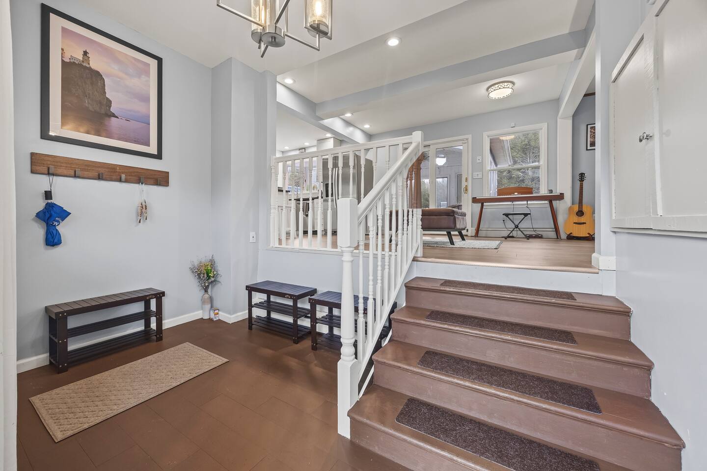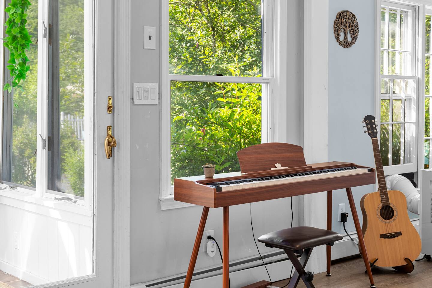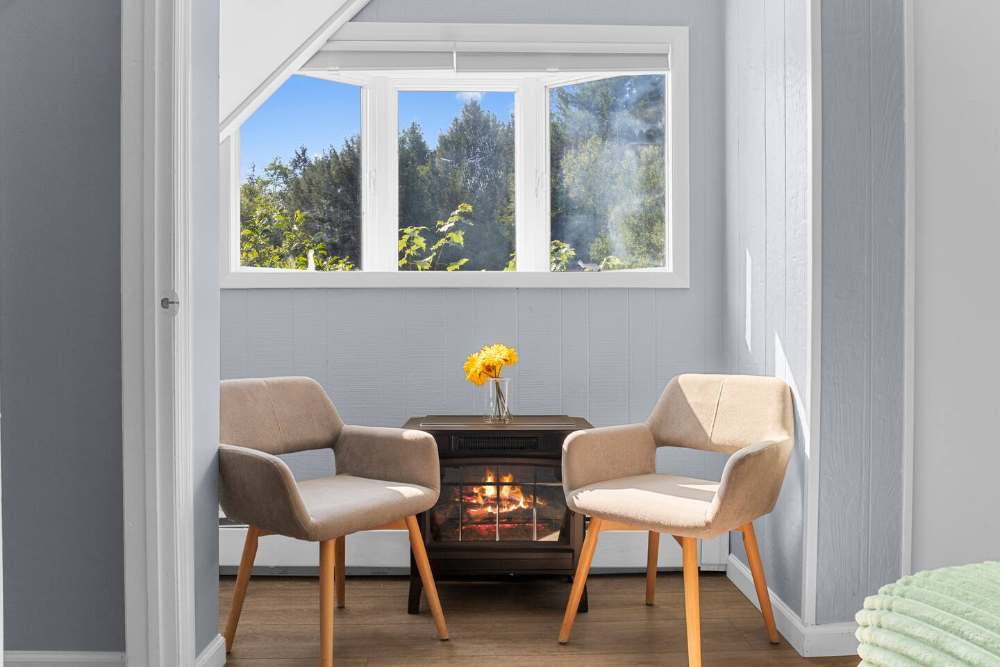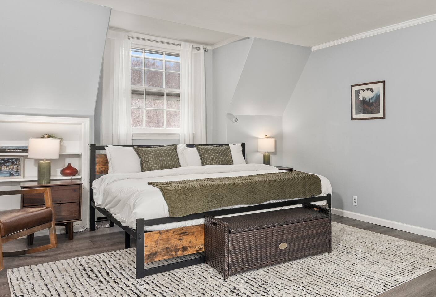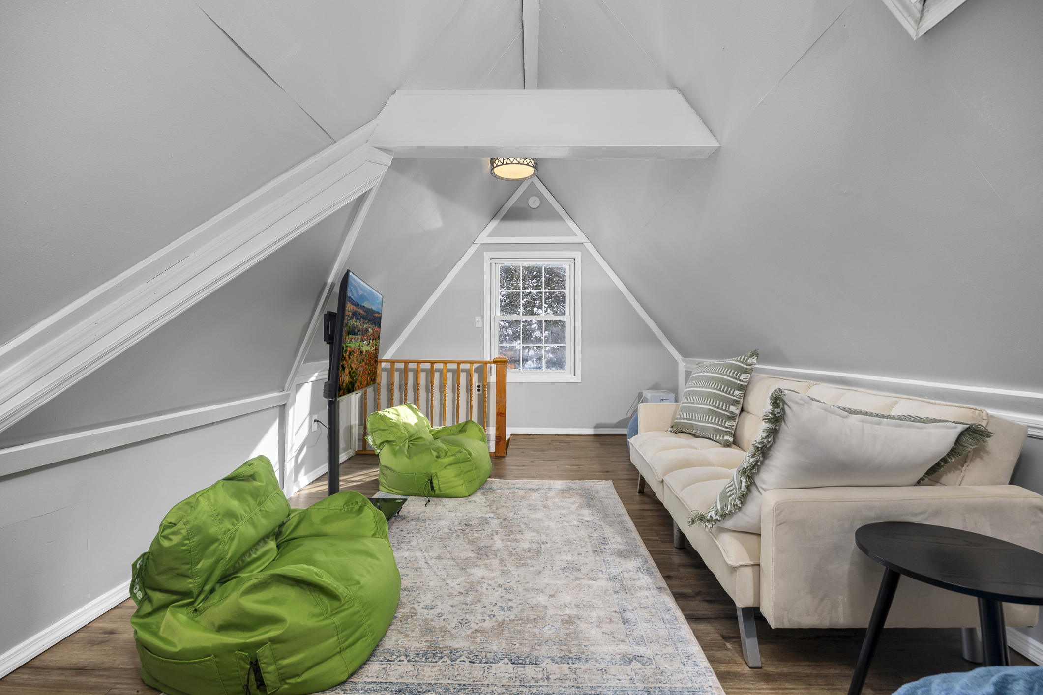 BEDROOMS AND BATHROOM ✔ 5 Bedrooms featuring a mix of king, queen, and twin bunk beds ✔ 3.5 Bathrooms (one with a standard tub and one with a soaker tub) LIVING ROOMS (2) ✔ 2 Large sofas & lounge chairs ✔ 2 40" HDTVs ✔ Fireplace w/ four logs provided to start fire ✔ Pool table ✔ Keyboard piano KITCHEN ✔ 8-person dining table with 8 chairs ✔ 4 bar stools ✔ A fully equipped kitchen comes with all essentials—dishwasher, microwave, refrigerator, toaster, cookware, and plenty of utensils. ✔ Keurig K-cup coffee maker ✔ French press OUTDOOR SPACE ✔ Large saltwater pool with lounge furniture ✔ Deck lounge seating on the patio ✔ 2 Adirondack chairs with umbrellas ✔ Small pond w/ 2 kayaks and 2 lifevests OTHER AMENITIES ✔ Children’s play loft with drum set, hockey table, and games ✔ 1,000-square-foot back deck off the radiant sunroom