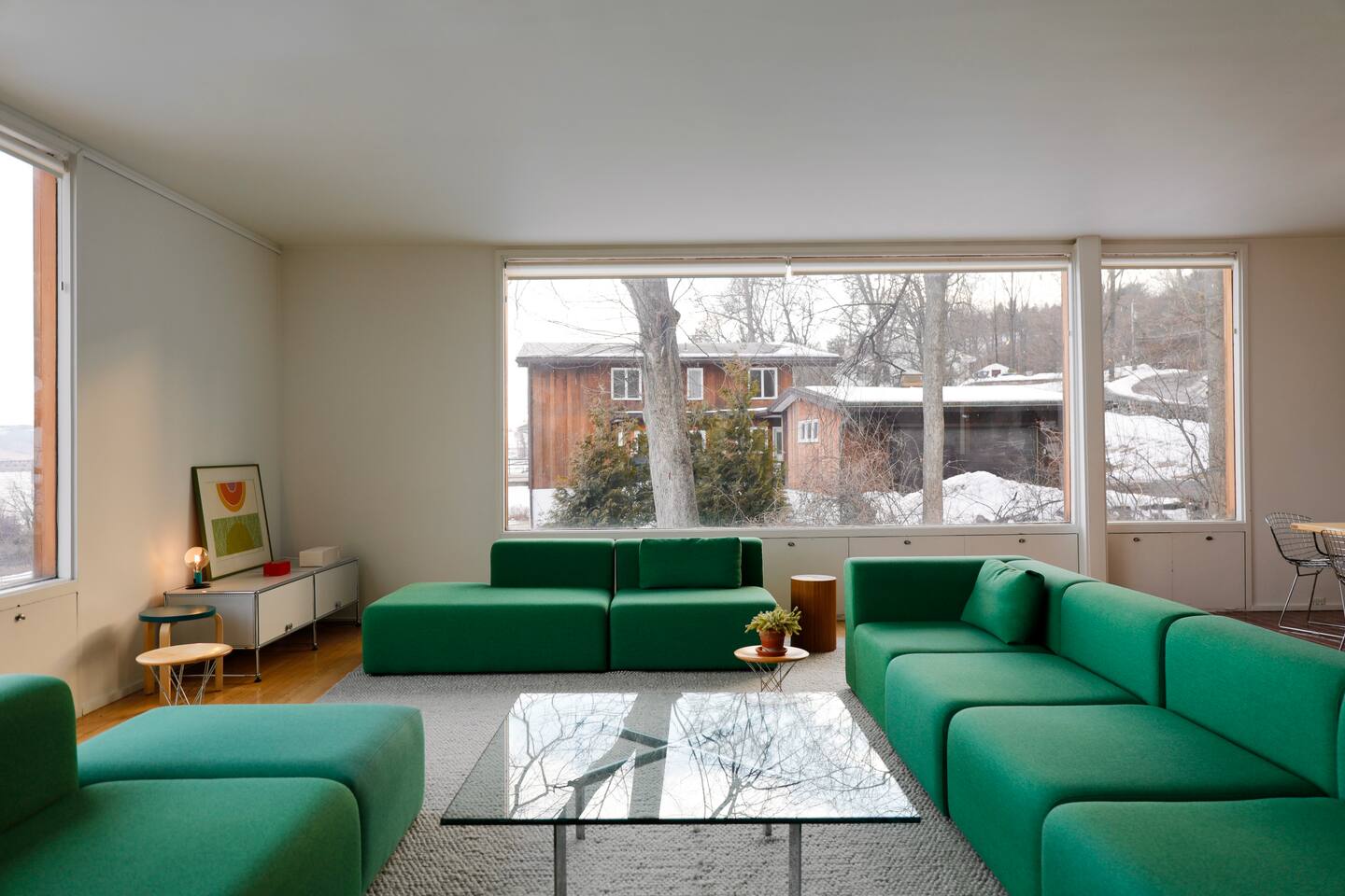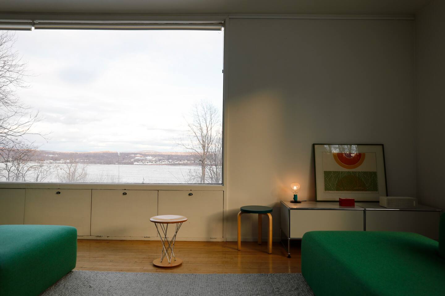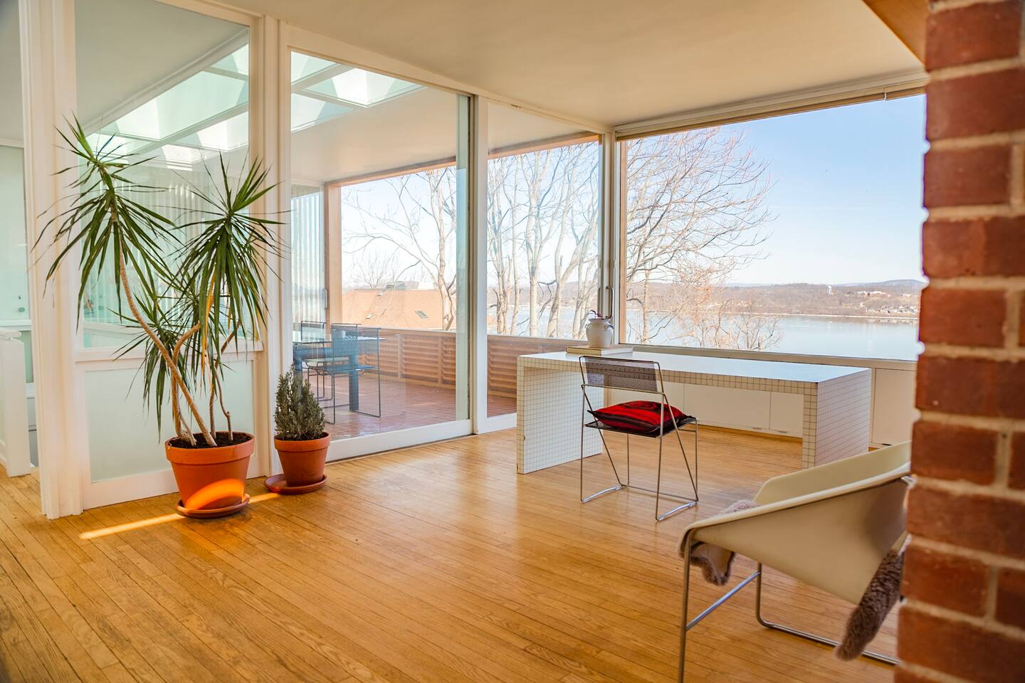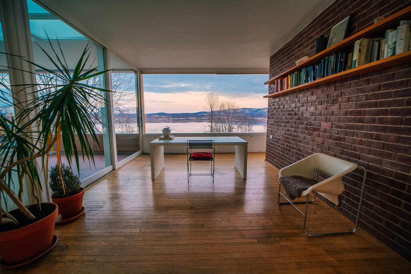Philip Johnson's Wolfhouse, built in 1949, is one of America's most iconic mid-century landmarks. Perched above the Hudson River, this legendary retreat features floor-to-ceiling glass that floods the home with light and frames sweeping river views, bringing the outside in at every turn. Thoughtfully restored and beautifully styled, Wolfhouse is a rare chance to sleep inside a piece of modern history, just minutes from Beacon, wineries, hiking, and Hudson Valley dining.