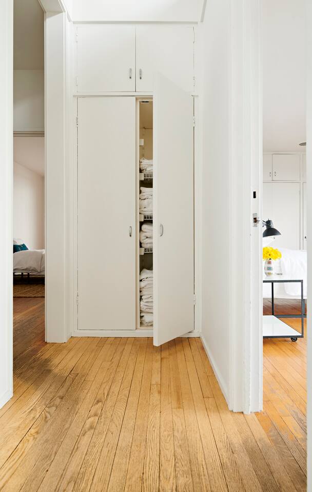 Stay in a piece of history. This home is a rare, living piece of architectural history. Nearly all of the furniture, fixtures, and technology throughout the property are original to the home. Please book with that in mind. BEDROOMS & BATHROOMS ✔ 4 Bedrooms featuring queen-sized beds ✔ Two of the bedrooms feature en-suite bathrooms ✔ 3 Full bathrooms LIVING ROOM ✔ Floor-to ceiling glass-windows ✔ Two large sofas ✔ Original brick fireplace KITCHEN ✔ Nespresso coffee maker ✔ Wine cooler ✔ A fully equipped kitchen includes all the essentials: coffee maker, dishwasher, microwave, refrigerator, cookware, and a full set of utensils. OUTDOOR SPACE ✔ Outdoor table and chairs with seating for 6