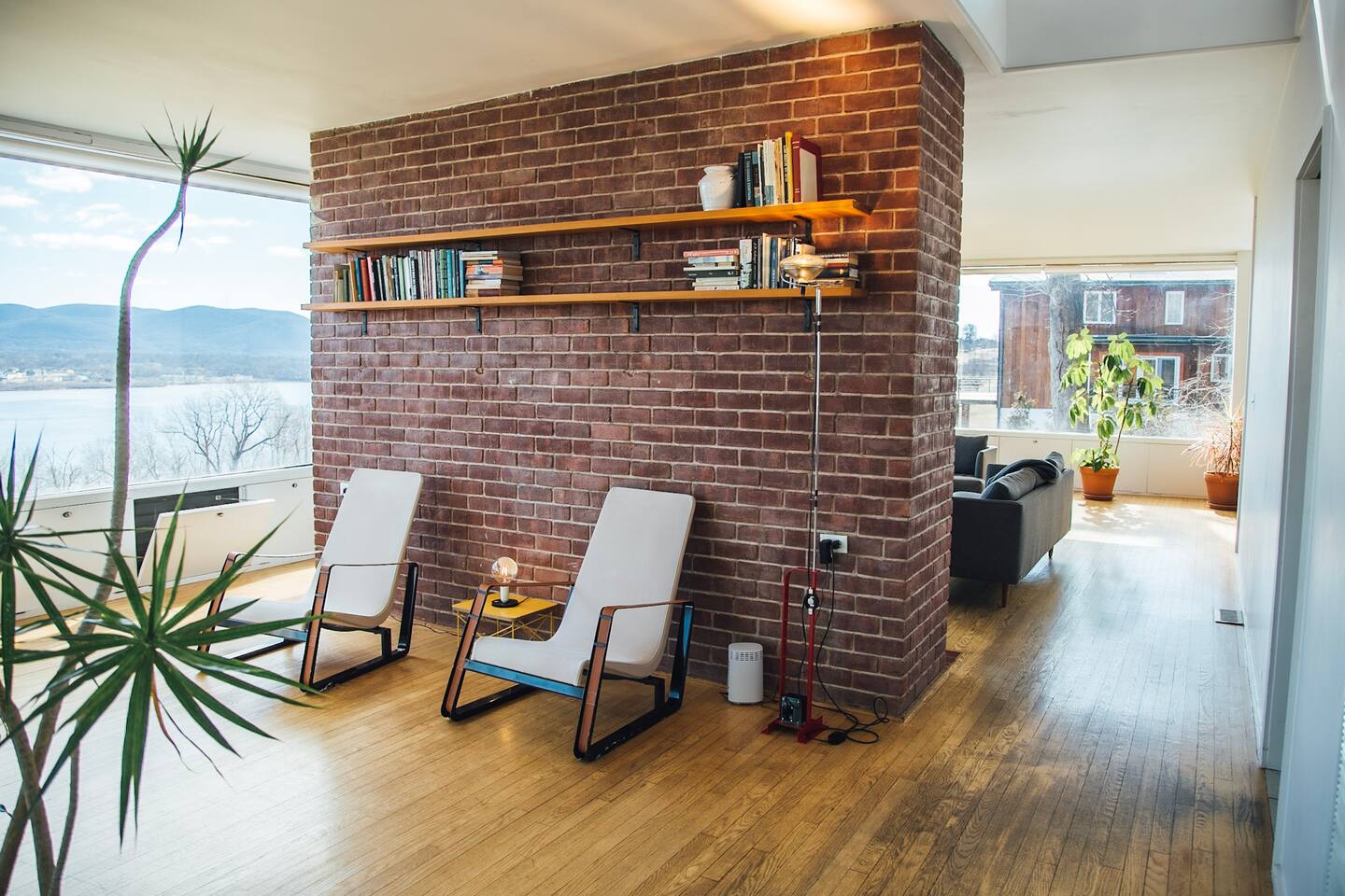 Located on a quiet hillside overlooking the Hudson River, the Wolfhouse offers sweeping river views and a peaceful residential setting just outside the city of Newburgh. Minutes away, guests can explore the Newburgh waterfront with its restaurants, breweries, historic architecture, and easy access to Hudson Valley hiking and outdoor recreation.