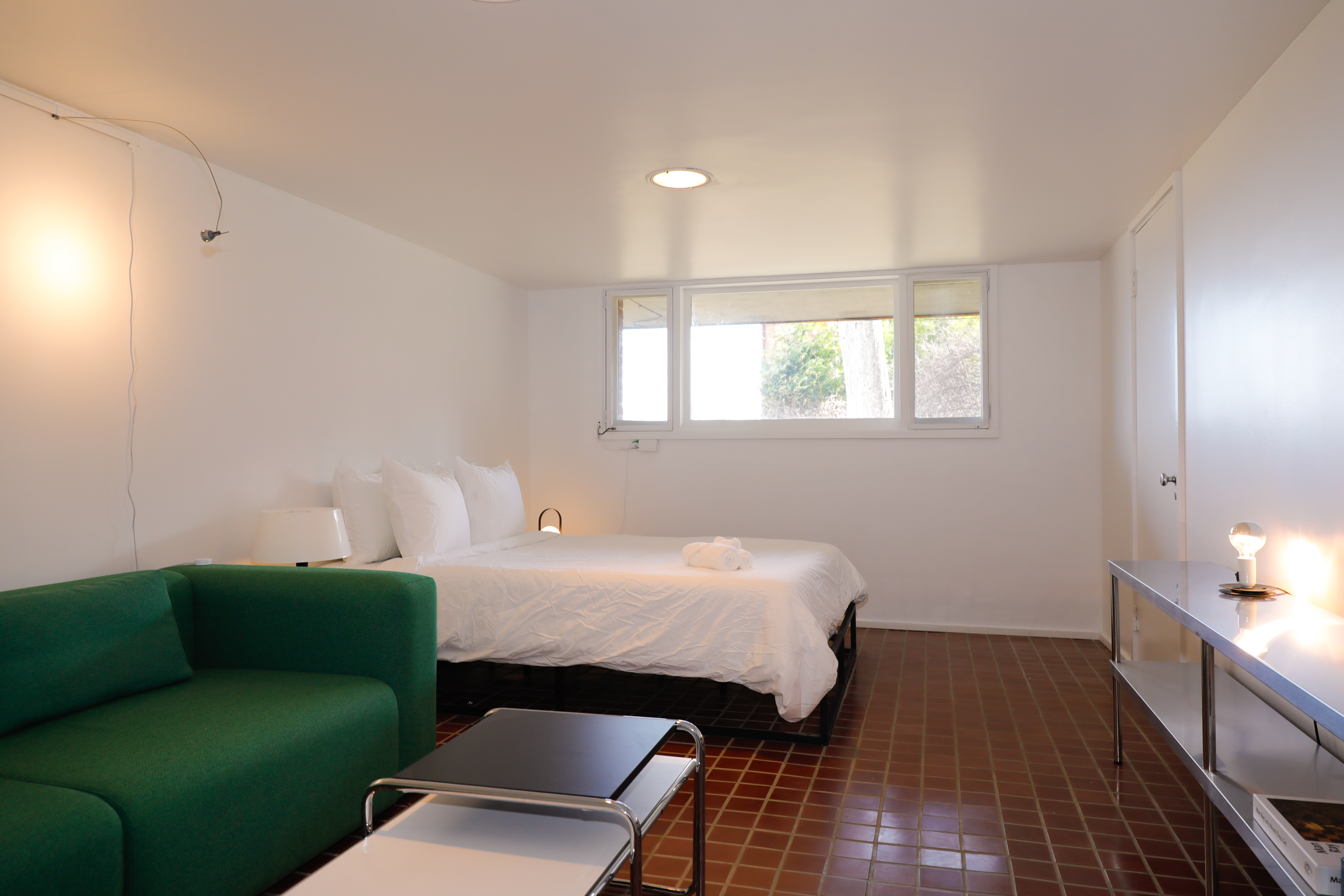 Stay in a piece of history. This home is a rare, living piece of architectural history. Nearly all of the furniture, fixtures, and technology throughout the property are original to the home. Please book with that in mind. BEDROOMS & BATHROOMS ✔ 4 Bedrooms featuring queen-sized beds ✔ Two of the bedrooms feature en-suite bathrooms ✔ 3 Full bathrooms ✔ The bedroom windows currently do not have shades; installation is expected in late April to early May. LIVING ROOM ✔ Floor-to-ceiling glass windows ✔ Two large sofas ✔ Original brick fireplace KITCHEN ✔ Nespresso coffee maker ✔ Wine cooler ✔ A fully equipped kitchen includes all the essentials: coffee maker, dishwasher, microwave, refrigerator, cookware, and a full set of utensils. OUTDOOR SPACE ✔ Outdoor table and chairs with seating for 6